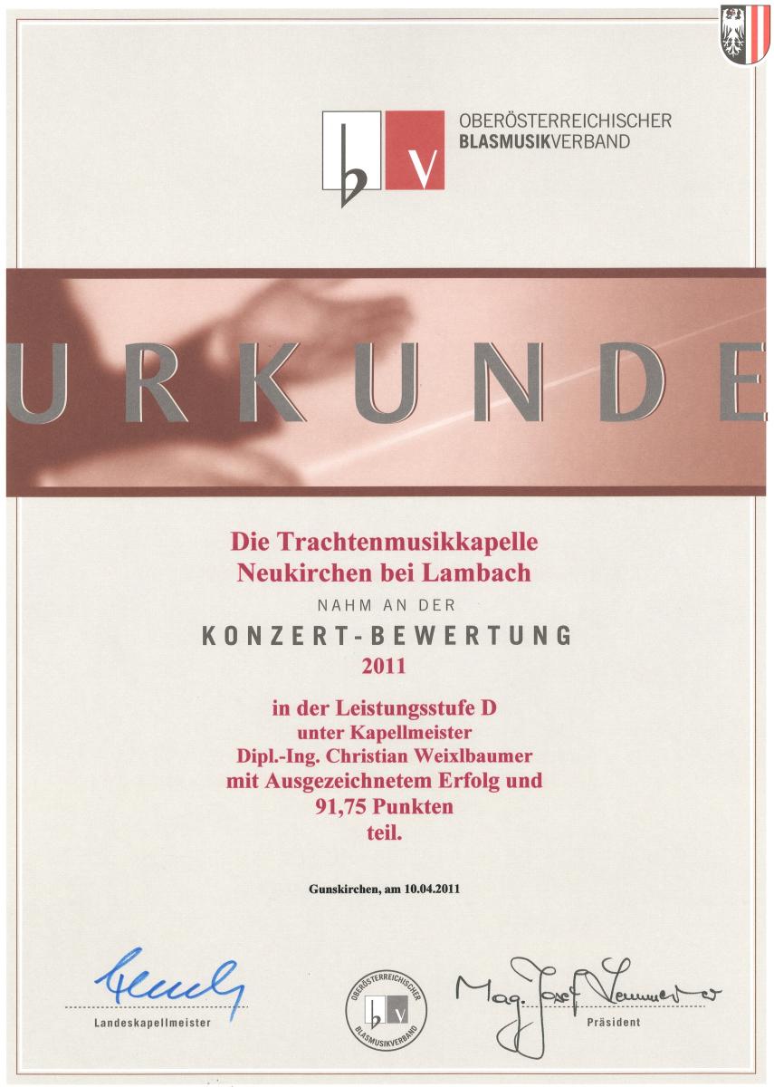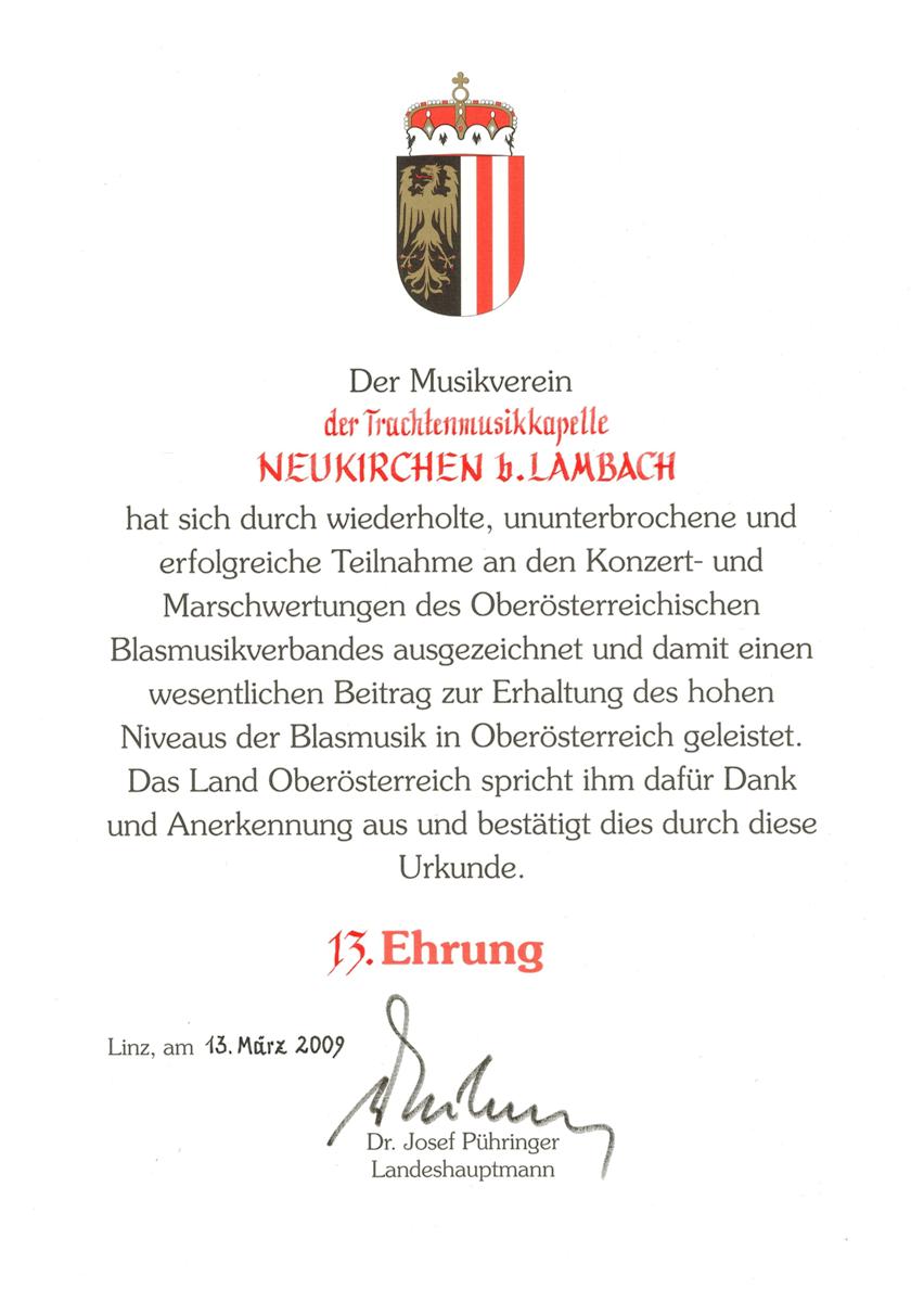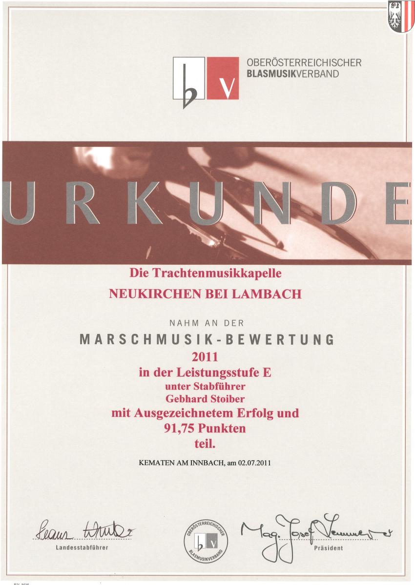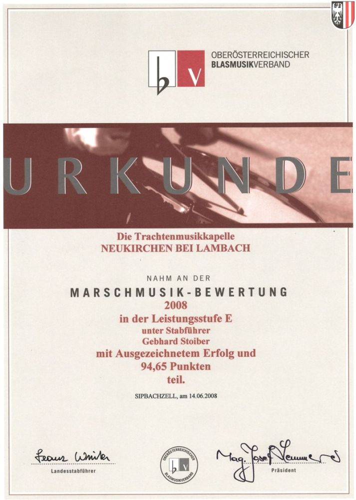 Urkundengalerie der TMK Neukirchen bei Lambach