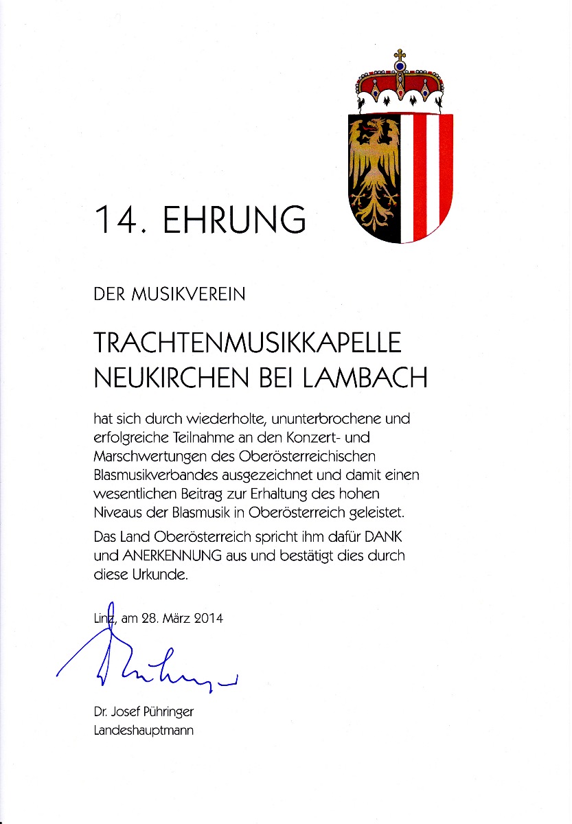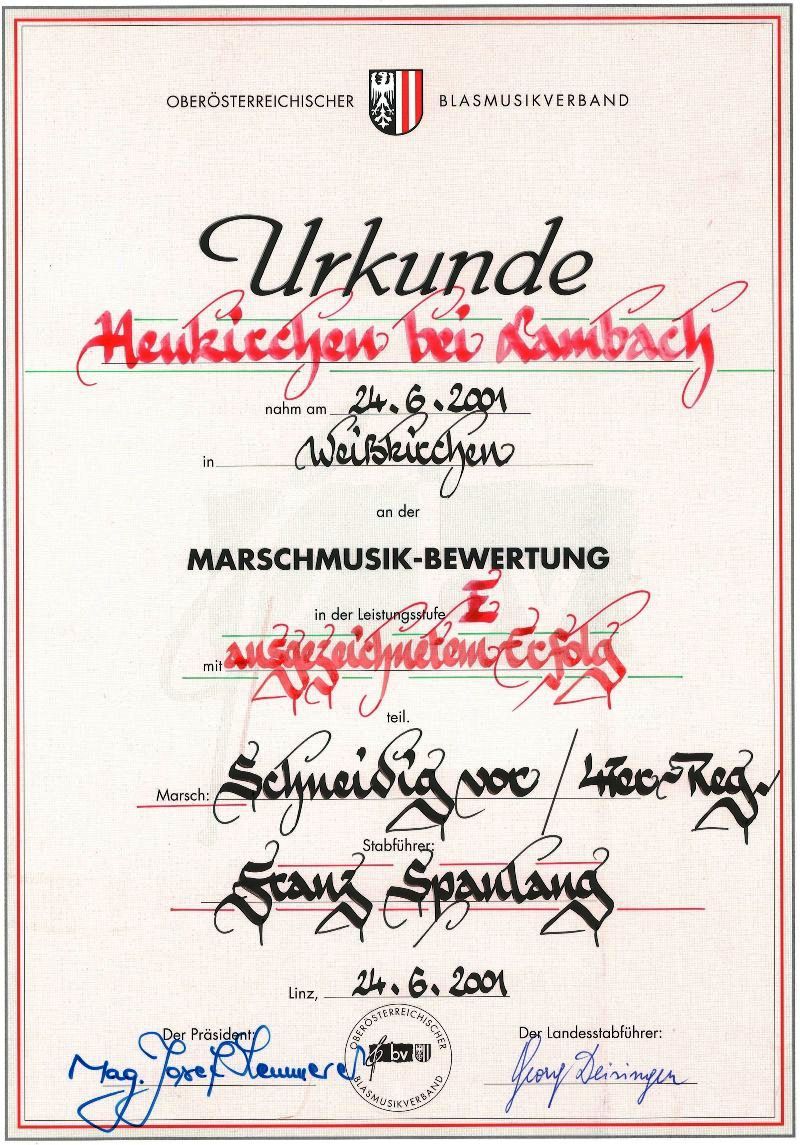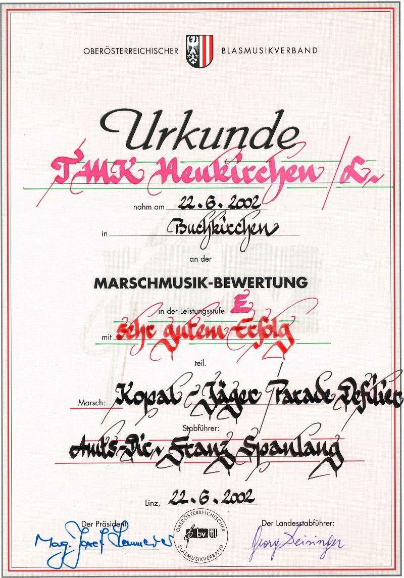 Urkundengalerie der TMK Neukirchen bei Lambach