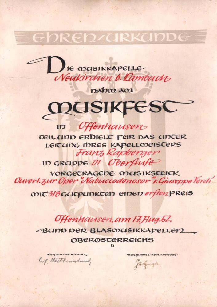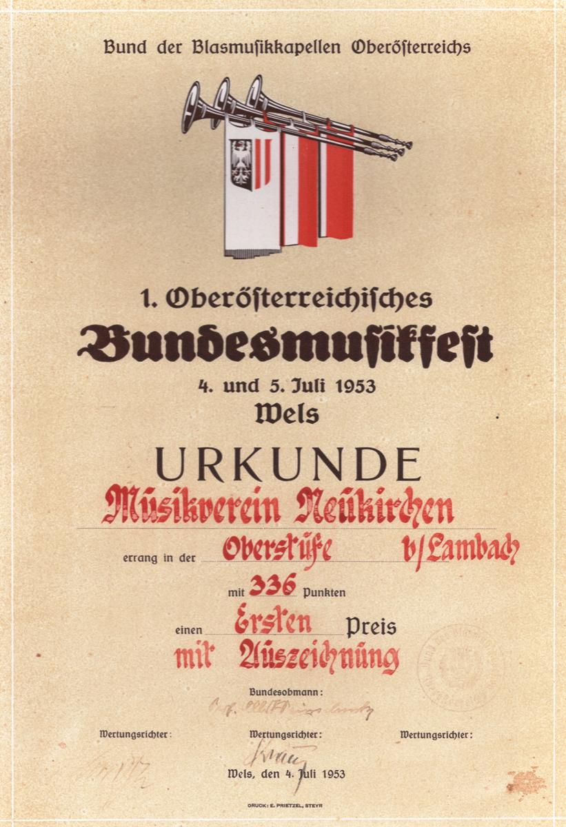 Konzertwertung Bundesmusikfest 1953 in Wels